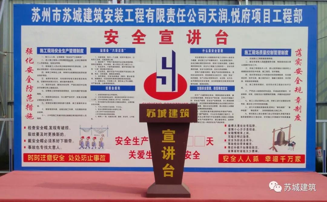 蘇城建筑一直以來堅持安全發(fā)展理念,大力弘揚生命至上,安全第一的思想。2019年進一步加大安全生產(chǎn)責任落實,推進安全專項整治,深化安全生產(chǎn)風險管理和隱患排查治理,提升企業(yè)安全生產(chǎn)標準化管理,創(chuàng)建“高標準、高效率、高起點”的安全文明施工現(xiàn)場!