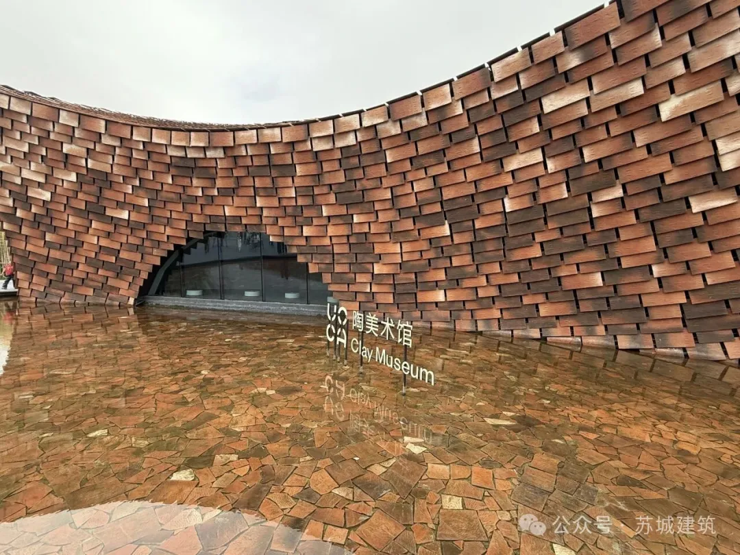 當(dāng)天上午,我們?nèi)缂s抵達(dá)陶二廠。這座始建于1958年的老廠房,曾是宜興紫砂產(chǎn)業(yè)的中流砥柱,如今在改造后煥發(fā)出新的生機(jī)。當(dāng)看到日本建筑大師隈研吾設(shè)計(jì)的 UCCA 陶美術(shù)館時(shí),家人們紛紛駐足驚嘆 —— 陶土打造的外立面在陽(yáng)光下呈現(xiàn)出 “窯變色彩”,仿佛將紫砂的千年工藝凝固成了建筑藝術(shù)。